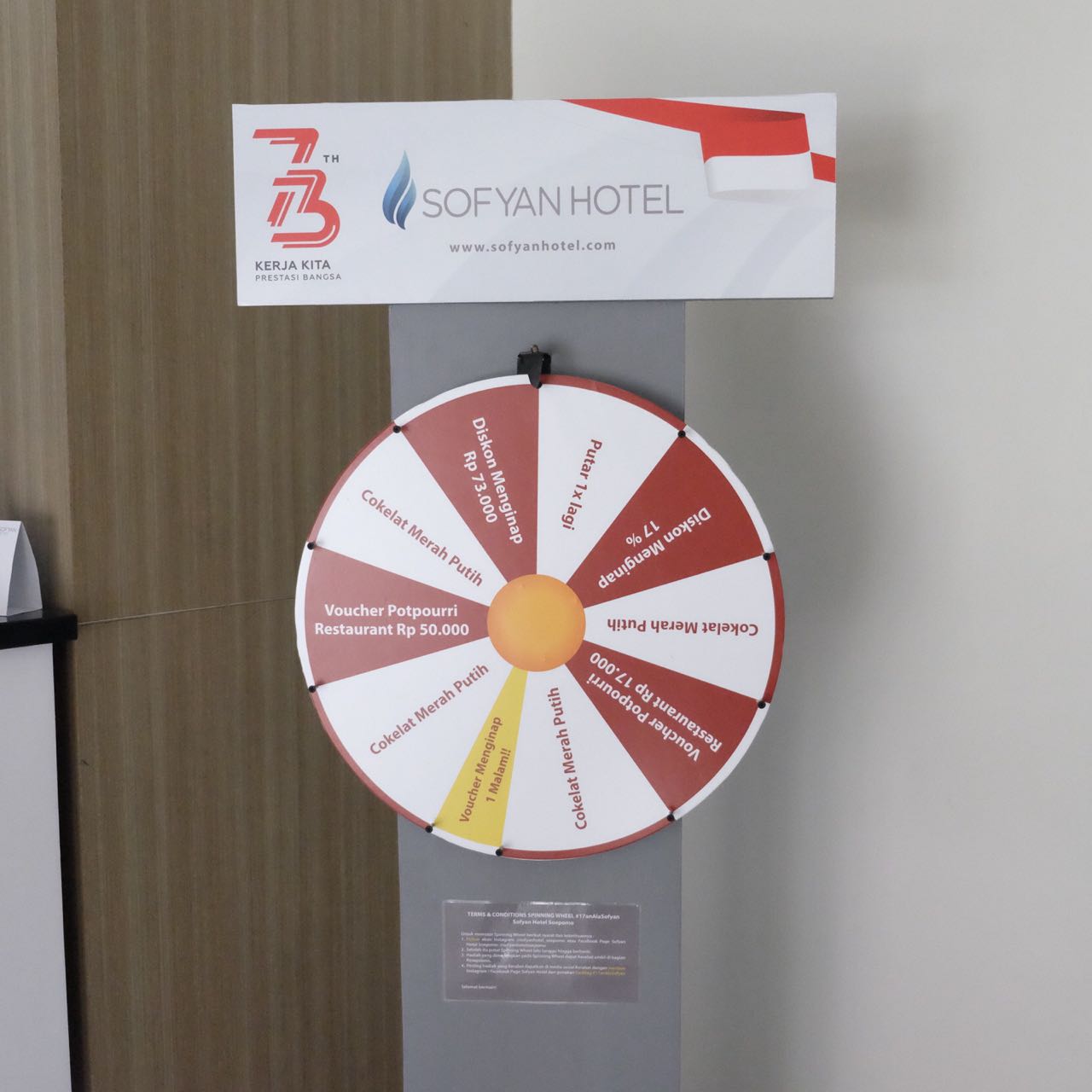 Dan, yang paling special dari program Spinning Wheel 17-an adalah Kerabat Sofyan berkesempatan mendapatkan voucher Menginap 1 malam di Sofyan Hotel.